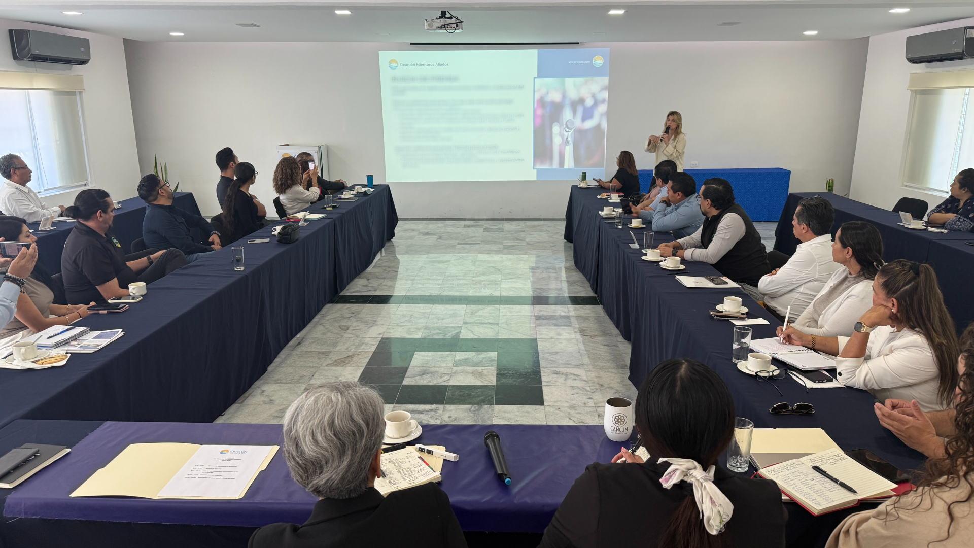 Esta primera reunión contó con la participación de líderes de la industria como AVIS, Bookolis, Cancún FC, Delphinus, France Water, Gas Natural del Noroeste, Grupo Ensol, Grupo Lomas, Grupo Mera, Grupo Santo, Hidroambiente, Hidrosur, Hospiten, Mirai, Paraty Tech, Radio Trunk, Telmex, The Dolphin Company, The Top Connections, Universidad Anáhuac Cancún y Universidad La Salle Cancún.